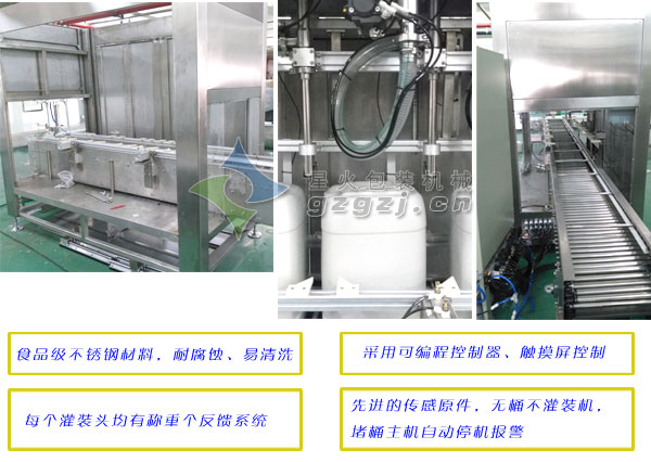 1、全自動(dòng)稱重灌裝機(jī)采用電腦稱重式灌裝,變頻調(diào)速,能滿足更重計(jì)量型號(hào)的灌裝。 2、適用于各種化工原料、食用油、機(jī)油、潤滑油、植物營業(yè)液、清洗劑、活化劑等大桶裝液體產(chǎn)品。 3、大桶潤滑油全自動(dòng)灌裝機(jī)灌裝方式先進(jìn),操作簡(jiǎn)單,計(jì)量精準(zhǔn),自動(dòng)化程度高。先進(jìn)的可編程控制器(PLC),觸摸屏進(jìn)行操作控制,使用調(diào)節(jié)方便。 4、灌裝方式為先前是灌裝,可有效減少泡沫的產(chǎn)生,也可滿足不同特性物料的灌裝。 5、每個(gè)灌裝頭均有稱重和反饋系統(tǒng),能對(duì)每一個(gè)灌裝頭的灌裝量進(jìn)行設(shè)置和單個(gè)微調(diào)。