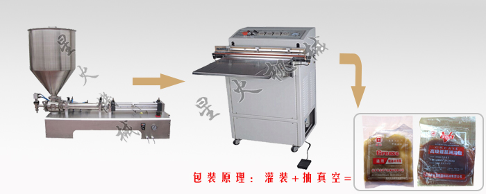 【產(chǎn)品介紹】: 此款適合袋裝高粘度物料,必須先灌裝再抽真,這種灌裝方式,適合于機油,黃油等物料!